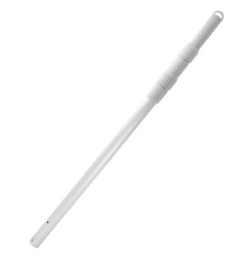 Cuenta con 12 ruedas que facilitan el desplazamiento, una salida para la manguera de piscinas de 1 ½” y un mango de enganche rápido para una fácil conexión al tubo telescópico.